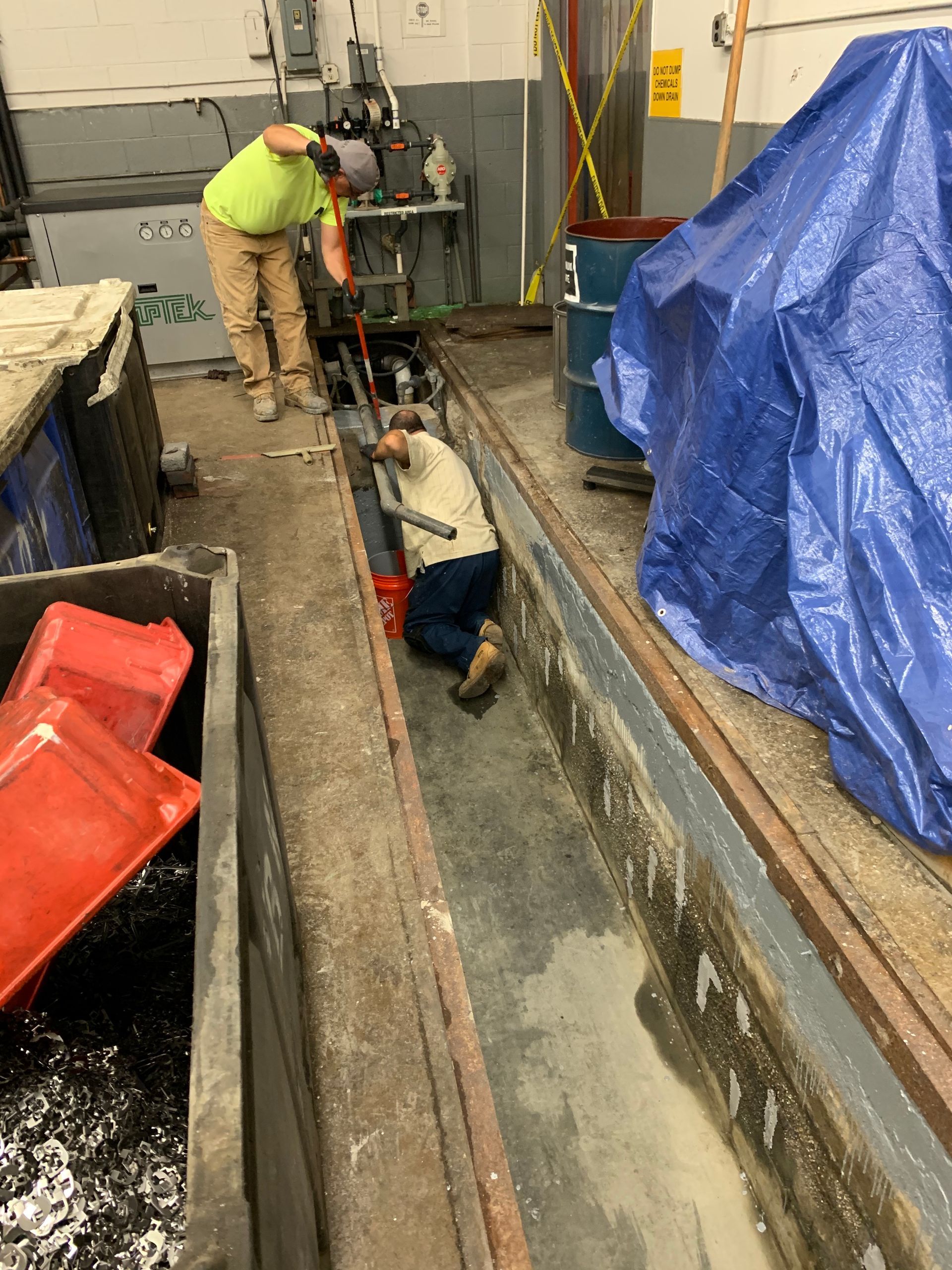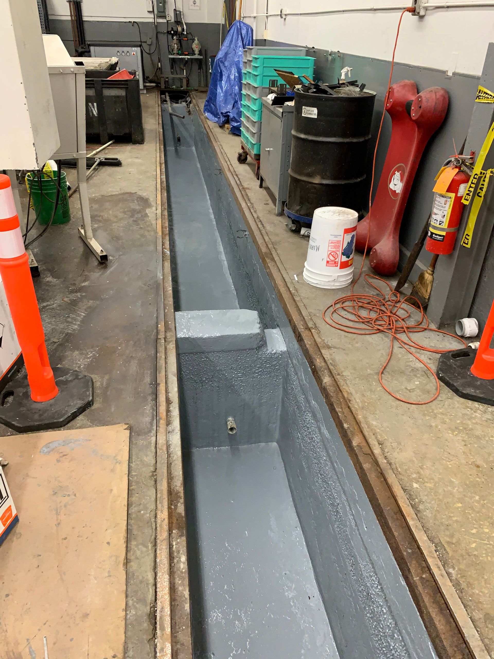 Solution: To reduce downtime and provide long-term chemical protection against a wide range of substances including acids and alkalis Advanced Specialty Coatings recommended repairing the damaged areas using Belzona epoxies and protective coatings. We first prepared the surface by abrading and eliminating the loose and deteriorating concrete. Then the damaged cracks, holes and divots were filled with a hard-wearing concrete repair composite that delivers exceptional compressive strength, good impact resistance and excellent adhesion to concrete. Lastly to protect the containment areas we applied a long-lasting protective coating that is resistant to chemicals including both sulfuric and hydrochloride acids.