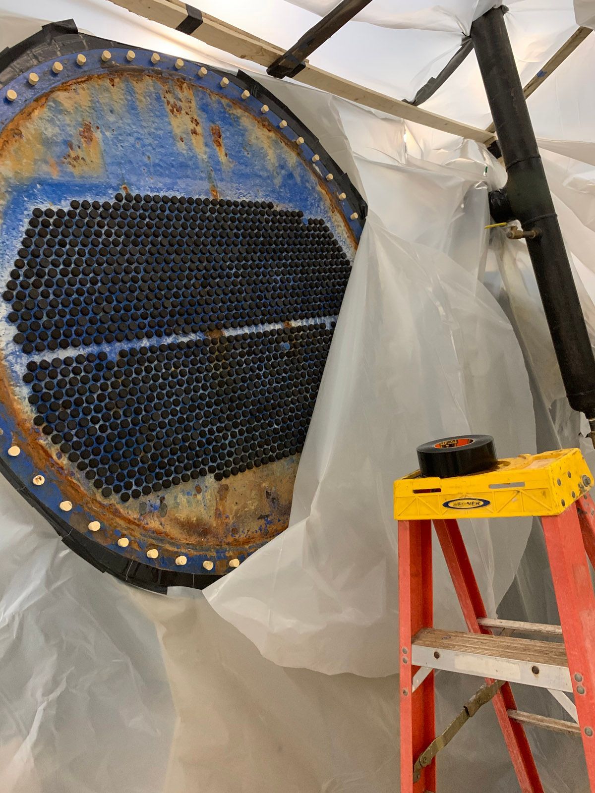 Problem: The Customer was experiencing rising electrical costs because their HVAC Chiller was losing efficiency caused by corrosion, partially clogged tubes, and a leaking Tube Sheet.
