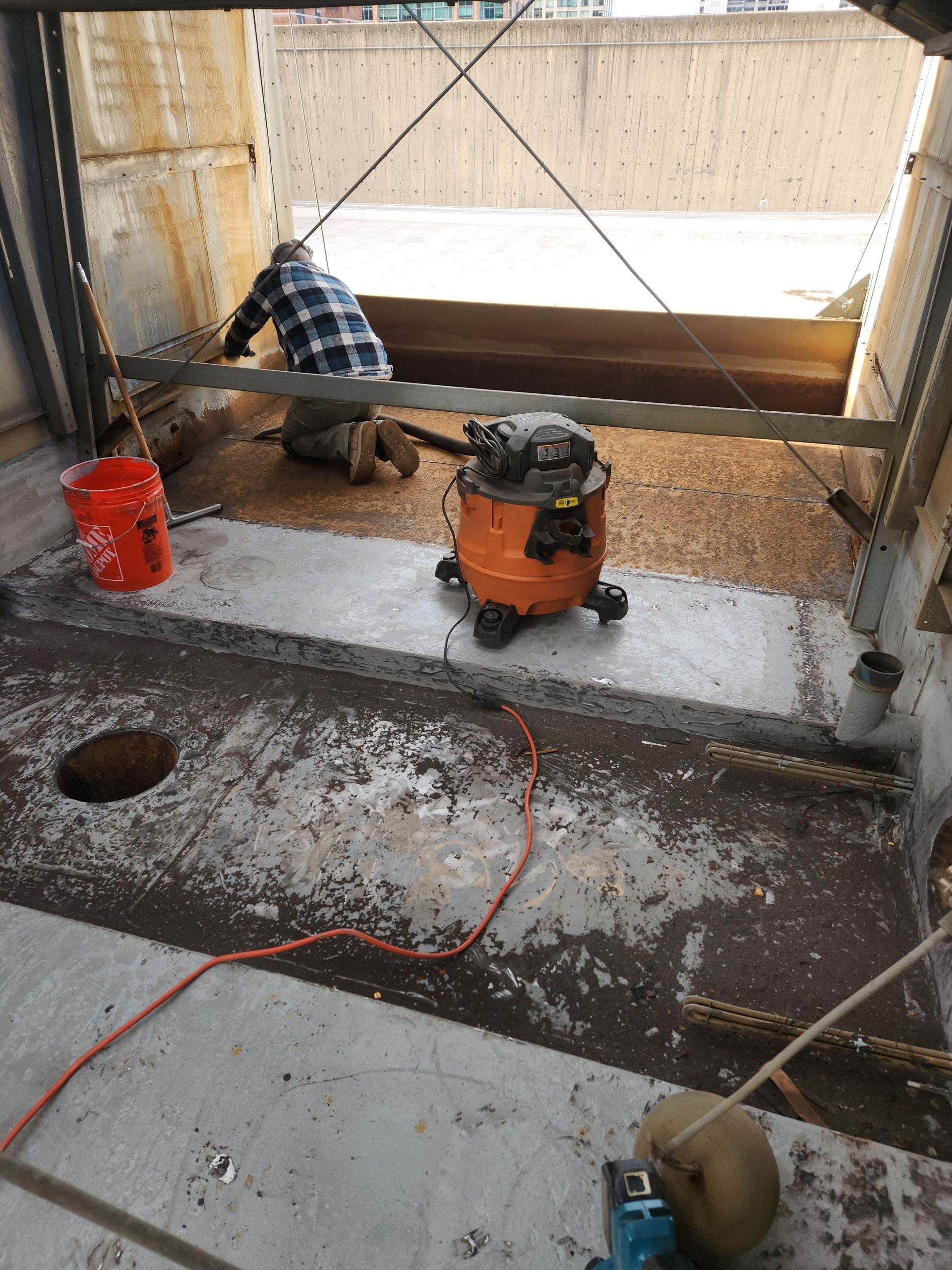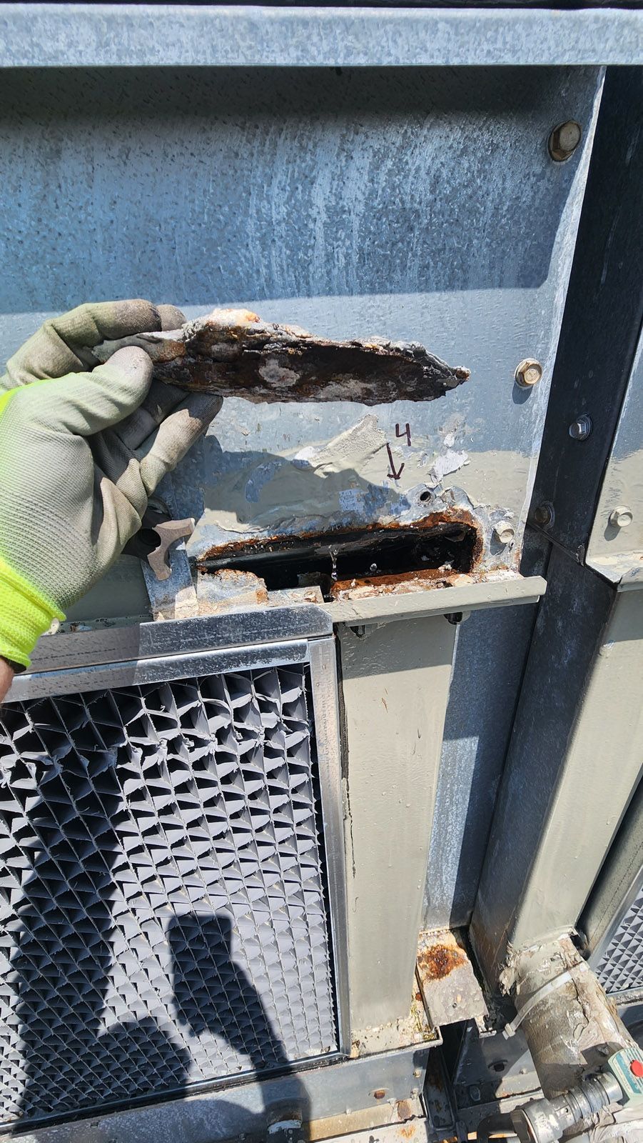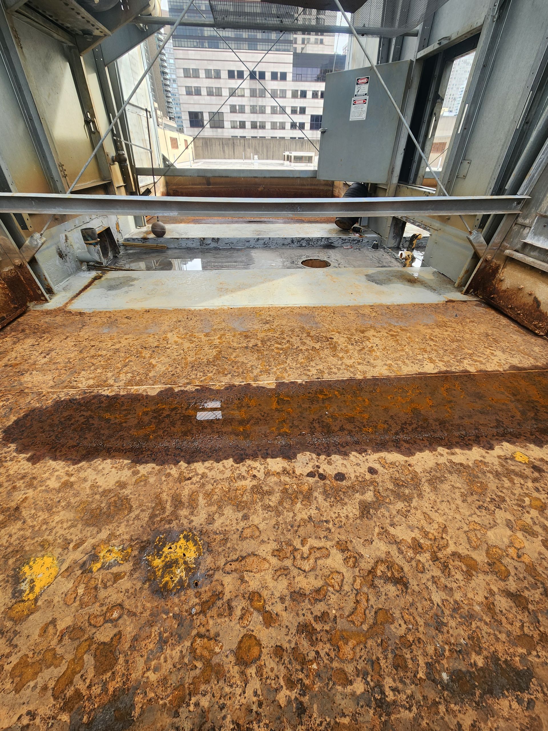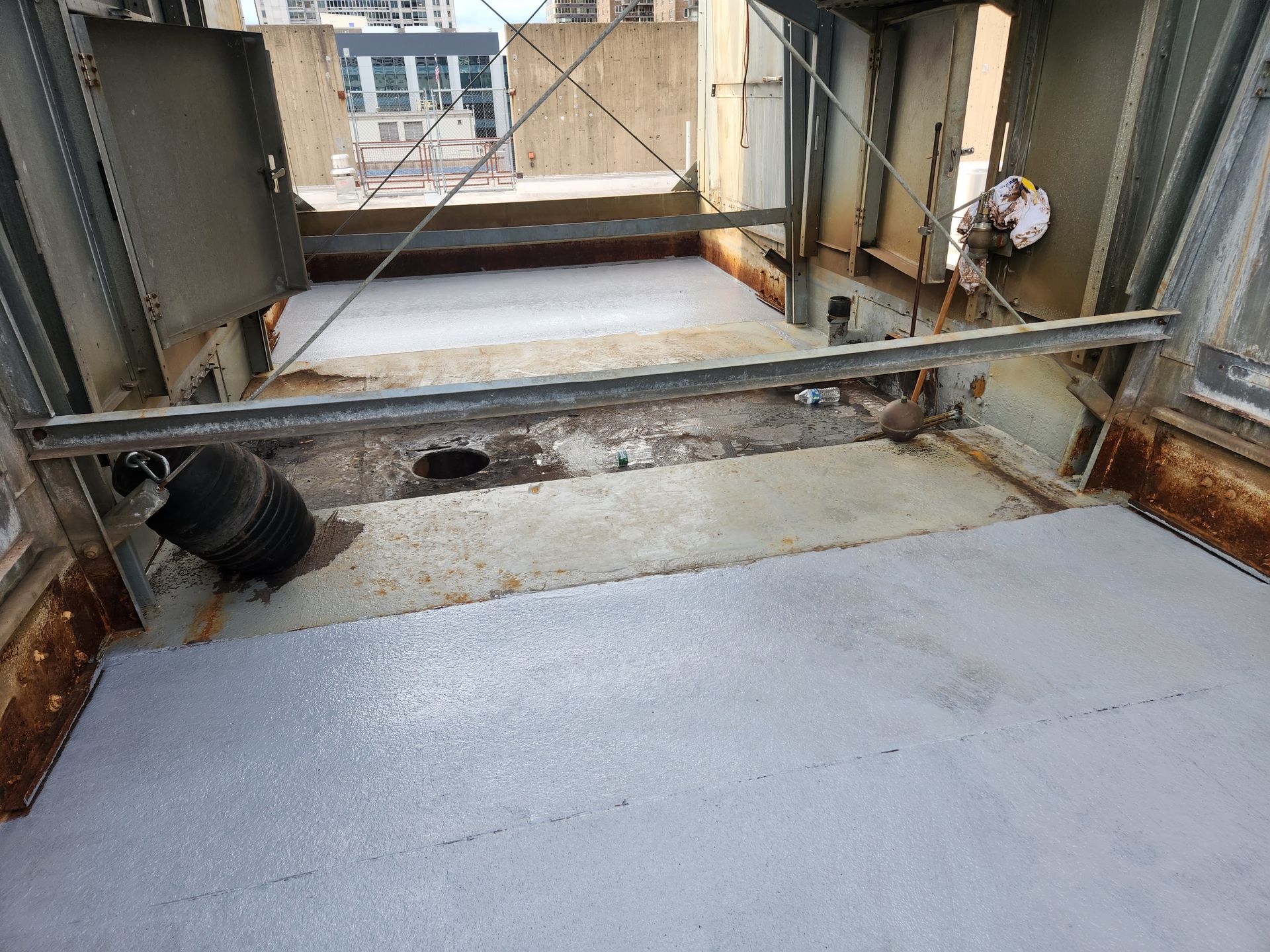 Solution: To permanently stop all leaks and protect the tower from future rust and corrosion Advanced Specialty Coatings recommended that the surfaces be mechanically abraded, and a paste grade epoxy used to repair the corrosion and leaking areas. This was followed by the application of a protective and leak resistant coating, an elastomer (rubberized) epoxy, to the cooling tower seams and protrusions.